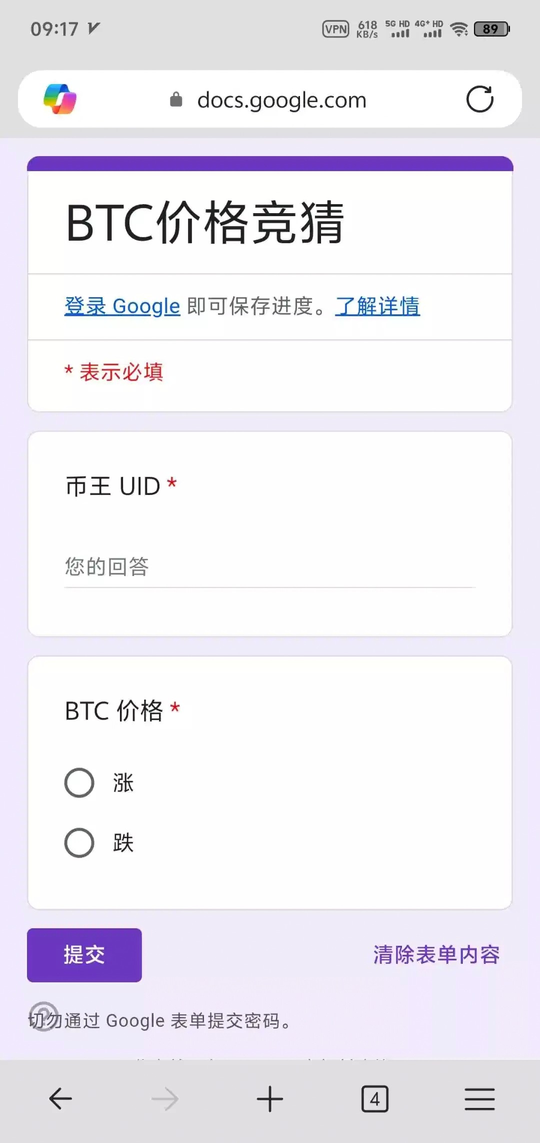 提交上面这个竞猜表格,需要挂梯子,还有下载币王注册填币王账户ID 猜涨跌,猜对了以后第三天到,比如今天提交涨,明天0点后核实结果正确错误,猜对以后第三天100u赠金到账,随便找个币做空或者多,拉个10倍杠杆很快,吃到100u的不少,我看论坛没人发我就发了,每天都可以参加币王