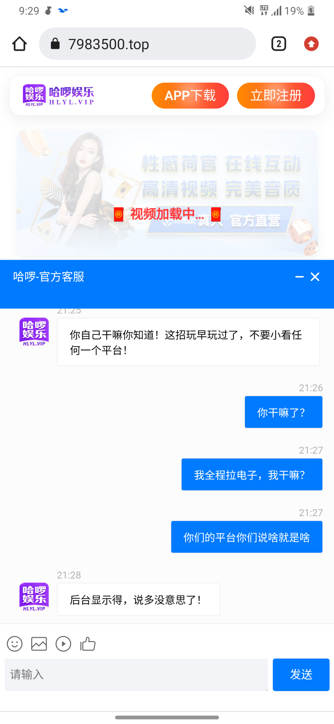 笑死我了这逼台看着像28台没有28玩 更没有大舞台笑死我了还能拉黑重新注册都不行这黑逼台谁充谁全家死了