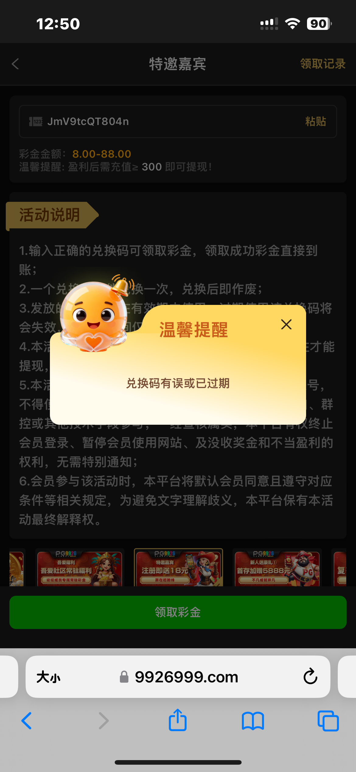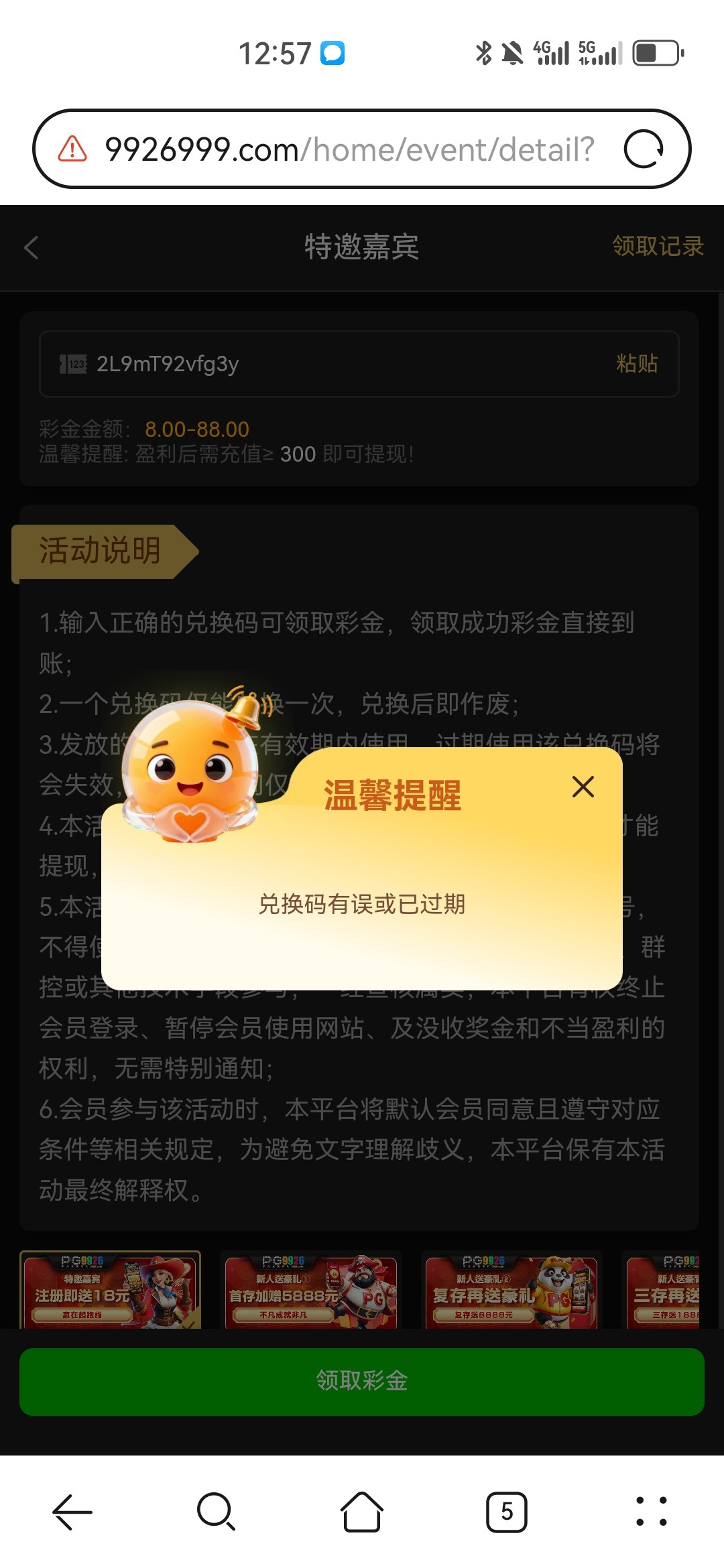 彩金码有误或己过期