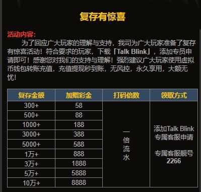 只能娱乐电子场馆,彩金不能买免费,卡分,藏分;盈利后需充值≥ 300 即可提现 介意可不领取!